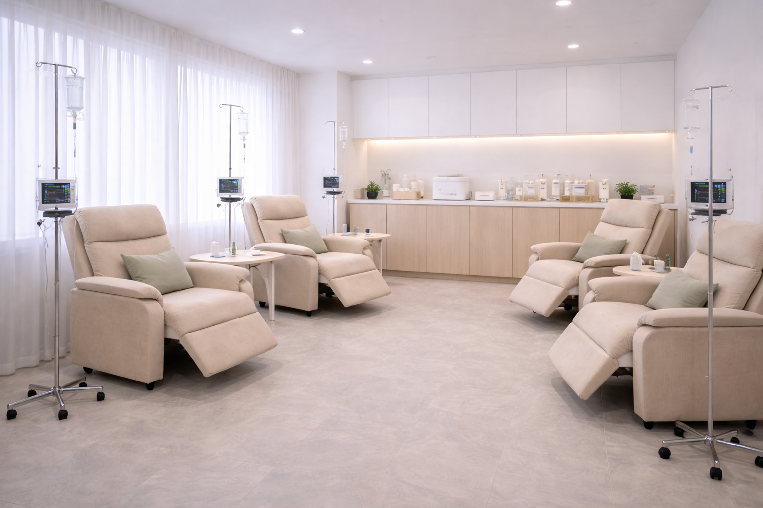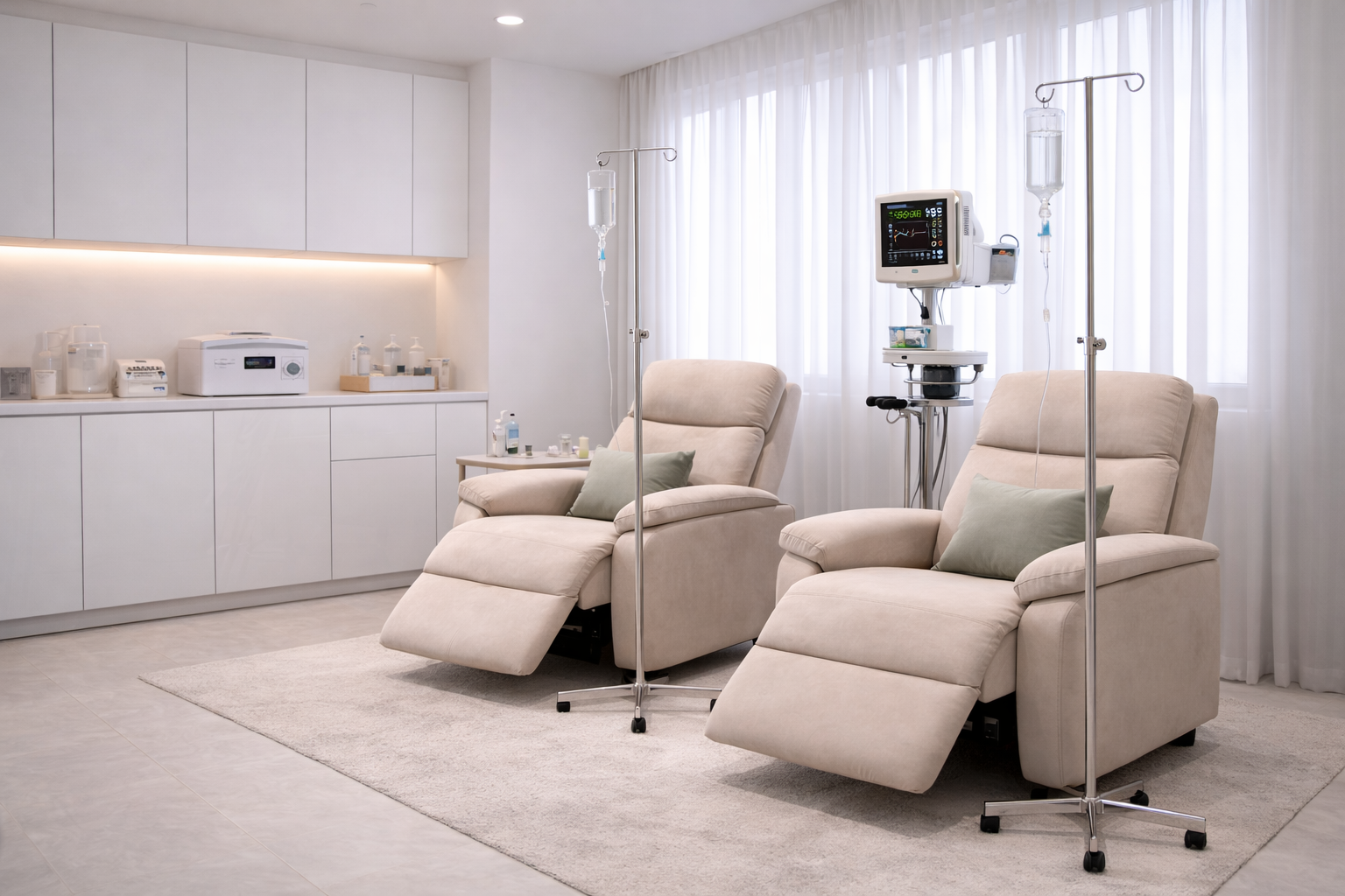 - Безопасные условия. Все инфузии проходят в стерильной обстановке, с соблюдением строгих санитарных норм. Вы можете быть уверены, что процесс безопасен, а контроль врачей минимизирует любые риски.